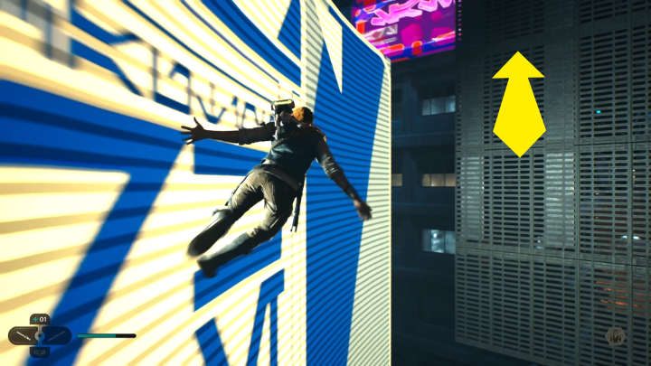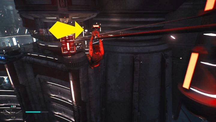 Use the new gadget to jump to a higher floor. Then use the terminal and, jumping from one platform to another, head towards the main mission marker.