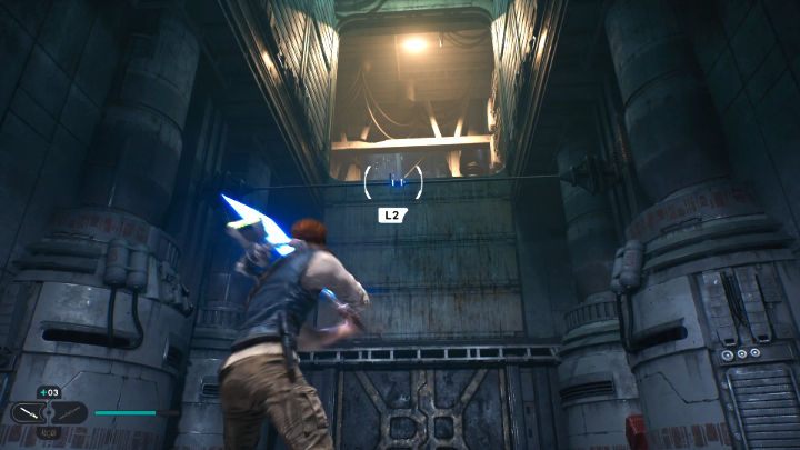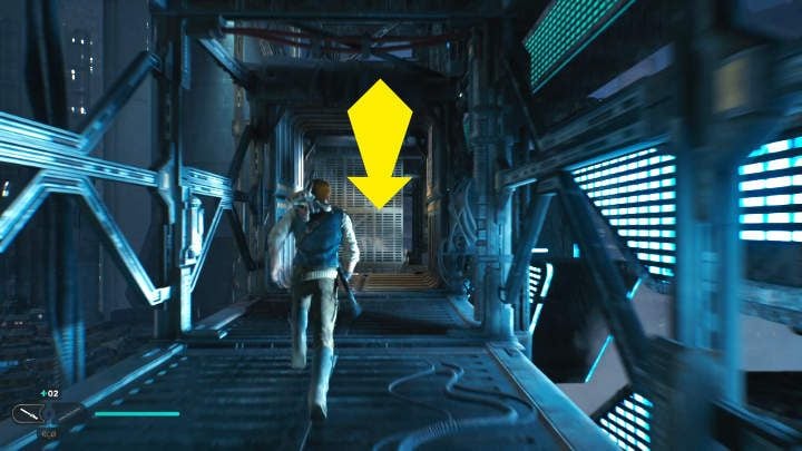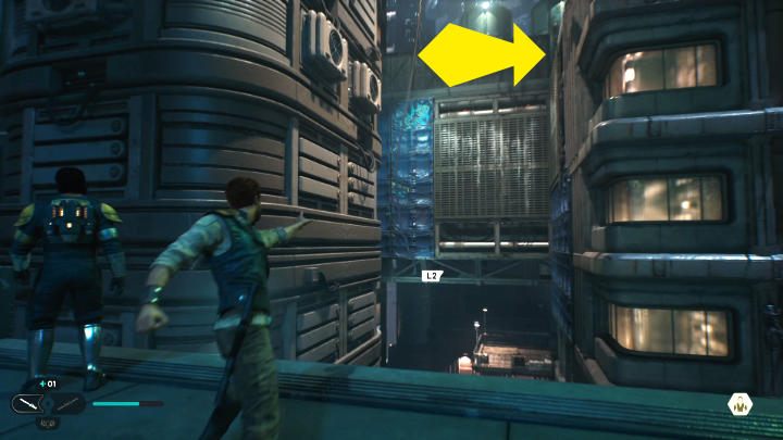 Defeat the opponents, then turn into the corridor behind them. Walk ahead, use Force Pull to create a passage and continue following the path.