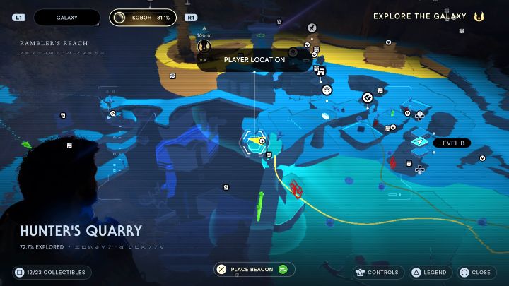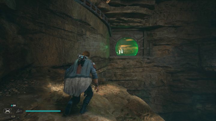 Description: Getting to this Tear requires some preparation. Start at Rambler's Reach Outpost and find a locked building (screenshot 1). You have to open it by using Force Pull, BD-1 hacking, Force Slam (power obtained in the course of the story), and Merrin's Charm. When you'll finally get past the door, you'll find Soont Madas inside. Talk to him and use Mind Control on him (choose any dialogue option you like). Get to the basement and investigate the corpse. When attempting to get back upstairs, Soont Madas will attack Cal. You have to defeat him - this is also a first encounter with a new type of opponent.