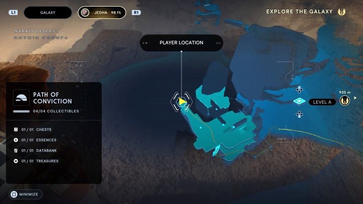 In the Path of Conviction location on Jedha in the Star Wars Jedi Survivor game, there are 4 secrets and collectibles to be obtained. In the guide we show you how to get to the essence, chest, database entry and treasure.