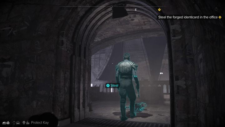 To get inside, you'll have to steal a keycard from one of the club's guards. You will recognize them by their blue uniforms and armor. When stealing, use Nix's help.