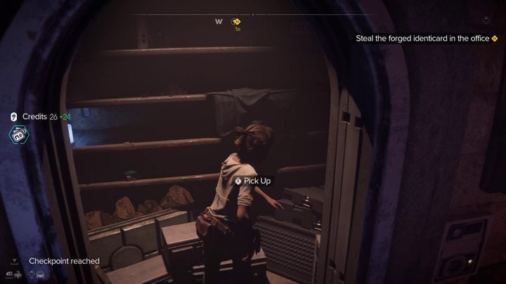 Upon starting a new game, you'll encounter the protagonist, Kay Vess, getting ready to go out. Exit through the corridor leading to the main hall of the Broken Hoof pub, and then talk to Bram who is standing behind the counter. He will hand you a broken data spike - a multi-tool device used for, among other things, opening locks.