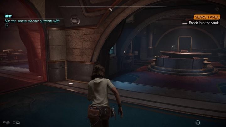 In the large room with the stairs you can order Nix to sabotage the alarms.