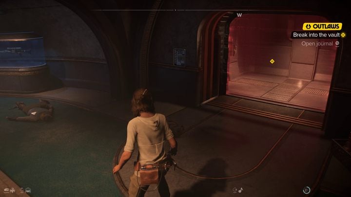 After taking the elevator to the vault level, you will need to deactivate another force field. Go through the open corridor to the left. A system of interconnected rooms will eventually lead you to the control room, where you will perform your first computer hacking. Familiarize yourself with the tips provided by the game.