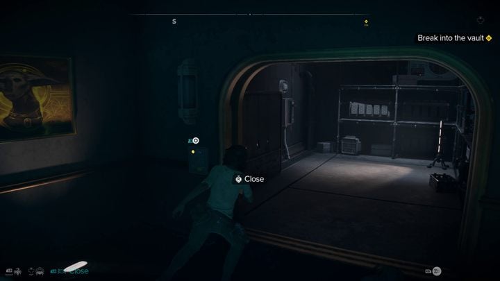 Enter the boss's office and head directly to the vault. Open the lock using the spike and take the card inside.
