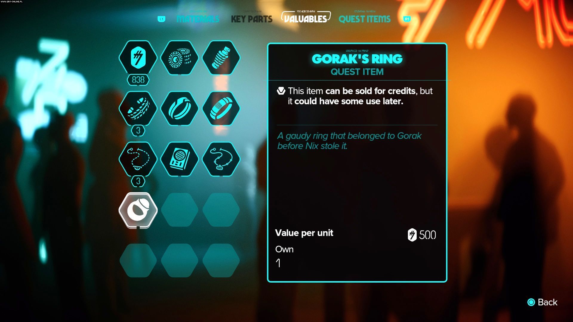 What is the use of Gorak's ring in Star Wars Outlaws? On this page of the guide you will find out if it is worth returning the ring to the owner in the canteen in Mirogan and what you can gain from it. We also inform you how many credits Gorak's ring is worth and whether it can be bought from the dealer.