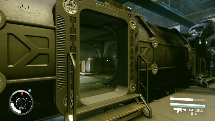 - Head to HopeTech building. Once in the premises, travel to a large hall at the back of the building where a spaceship is under construction. Take a closer look at the ship - you'll find the entrance to it at one of the side walls (screenshot above).