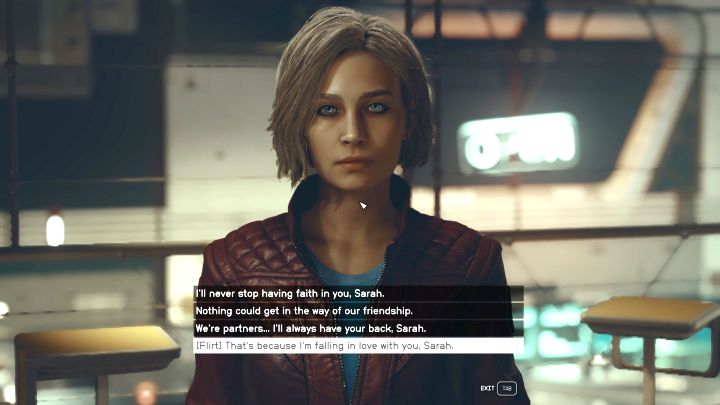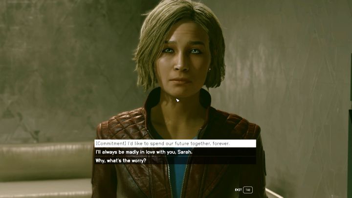 In one of the conversations with Sarah, tell her that you can help the woman - you will unlock the In Memoriam side mission. Completing it is required to complete the romance with Sarah - she will accompany you on this mission. You need to: