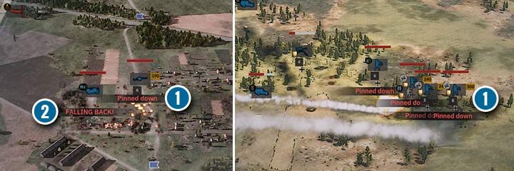 - If the bar is filled, the unit becomes pinned down. In this state they do not fight, do not move, and do not respond to orders, except for the order "retreat".
