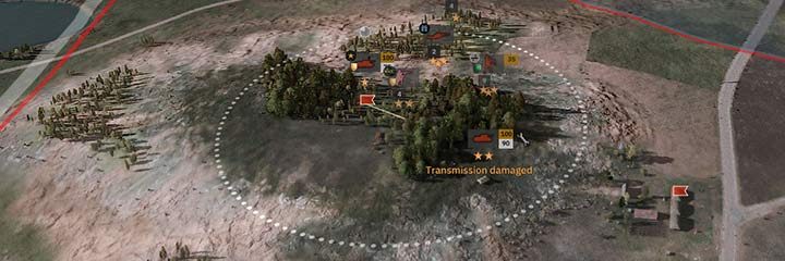 - Units morale - each unit has a red bar depicting their morale (just above its icon). If your unit feels good, the bar is invisible. When it gets under heavy fire, the panel becomes visible and will begin to fill up. Different types of troops react differently to enemy fire, for example, infantry is vulnerable to artillery fire and flamethrowers, and tanks panic faster under massive fire, which may not even penetrate the armor. Units can panic, flee, and in the worst case, surrender. Also, they will not allow other units to surrender to the enemy in their (leader's) range.