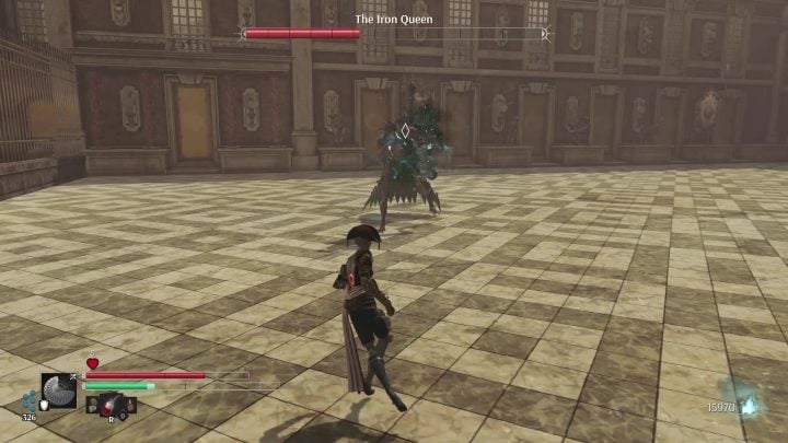 It is best to approach the Iron Queen and attack her with melee attacks when she uses her ranged moves - she is then vulnerable at close range. When she jumps up during phase II, you should wait for her to move towards you. If you dodge at the right time, she will be defenseless for a while.