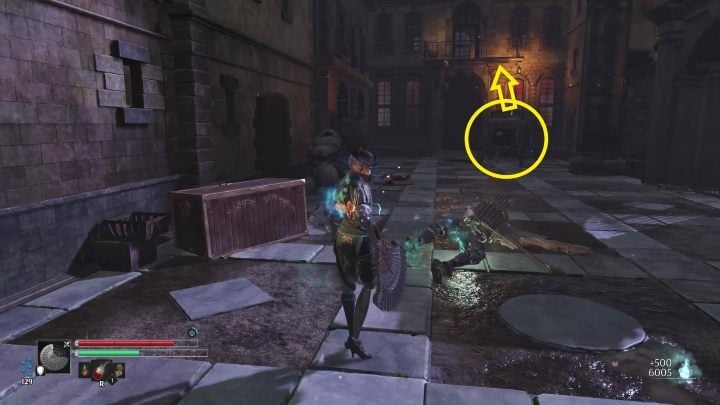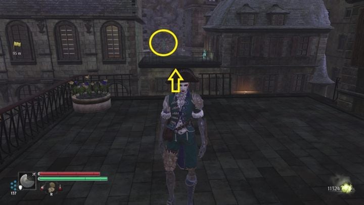Walk to the other side of the balcony. Head to the adjacent platform using Momentum of Selenite , and then smash the wall marked above with The Alchemist's Ram. Get through the room and jump down to the street below. A Butcher and a Courier are encountered here.