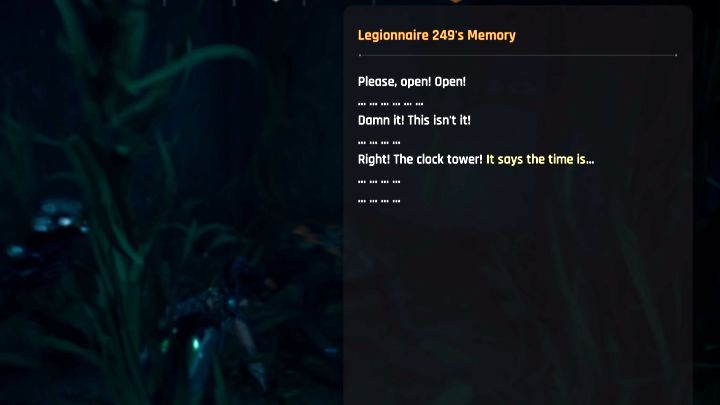 - Here, Eve needs to complete a climbing sequence (you'll learn how to dash mid-air) and then reach an area with a clock tower in the background.
