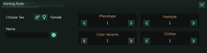 Now you need to choose the starting ruler. Pick the name, sex, appearance. This does not affect the gameplay in any serious way and depending on a political system, your ruler can change very fast.