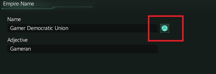 This section will allow you to pick a name for your empire. You can come up with your own name or use the generator to pick a random one. To use the generator, click the marked button. You can use it unlimited number of times to learn about different options.