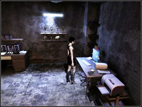 Use the computer #1 only to learn that the password has been changed. The generous killer will call us and warn us about his near arrival. Hide in the chamber with the cold corpse of a woman #2. Soon, we will take revenge on the killer for everything he has done. Once you regain control over the character again, leave the basement.
