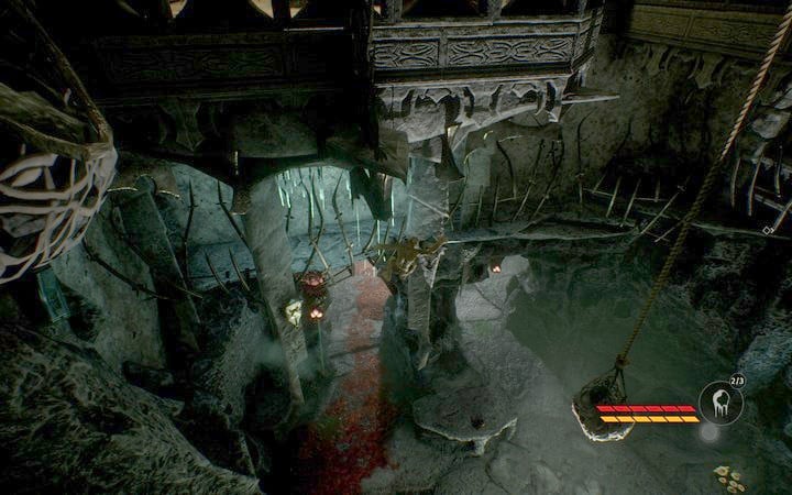 The second route. Find a large hole in the room with white light shining on its walls. Use the hole and begin the climb to the balcony that will lead you through rocks, handles, and a rope. Proceed to the stairs.