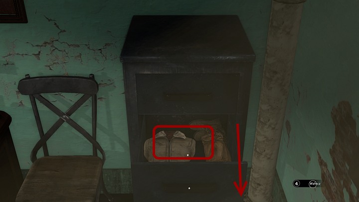 Go left - go pass the two patients talking by the fountain, the next one, who's standing alone at the door, and two men in white smocks. Enter the room left from them (the name of the doctor is hanging on the door). Talk to the man inside. During the test with the polygraph chose answers according to your liking (although, if you want to unlock One flew over the nut-job's nest then you can't allow your heroine to lie - options: 1, 1, 1 or 3, 1, 1 or 3). When after the test ends (achievement: One flew over the cockoo's nest) the doctor says that Kate's things are in the drawer. Approach the tall, narrow chest of drawers in the corner of the room.