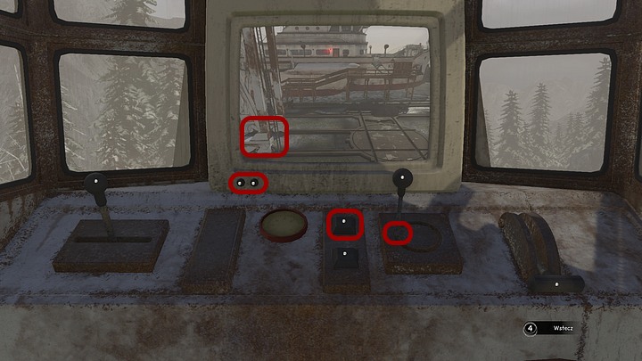 - the lever on the right should be moved down (make the correct move with the mouse) so you can turn the platform with the crane;
