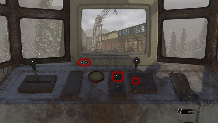 - the lever on the left must be moved to the right (make the correct move with the mouse) so you can move the crane to the right as far as you can;