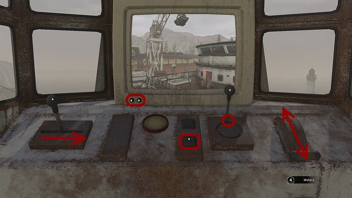 - the lever on the left must be moved to the right (make the correct move with the mouse) so the crane can be moved to the second track (closer to the ferry);