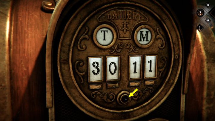 You will find the ticket machine at the 5th train car. Use the dials to change the date to 30.11, which corresponds with the ticket, then press the black button.