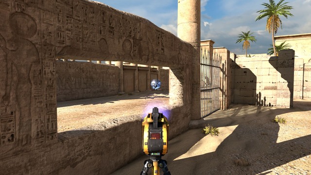 Link the first connector with the transmitter and the doors ahead. Get the second connector found behind the door and place it as shown on the picture. In that place the ball will bounce from the connector and you will have a moment to walk through the door and take the sigil. Quickly take the connector when the door opens and place it on the red button.