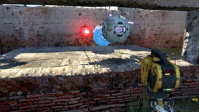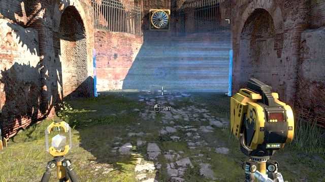 Make the balls move in one line with the jammer. Then use this jammer to unlock the red transmitter behind the barrier.