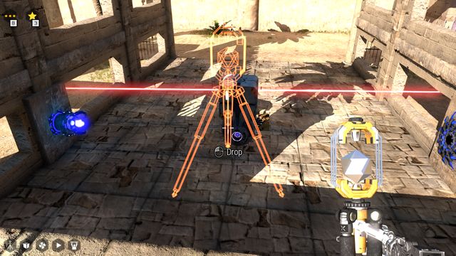 Now go from the other side and pick up the connector. The same thing you will have to do with other two. Other connectors should be directed on the red button and the red transmitter behind the barrier. One more thing to do is to take the hexahedron from the ball to block it so it won't cut through the red beam.