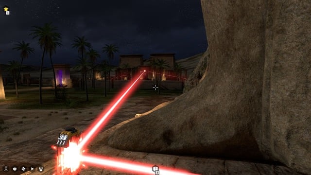 Walk outside and link the connector with the one floating in the air to get the laser beam. With the help of available devices open the door before the star.