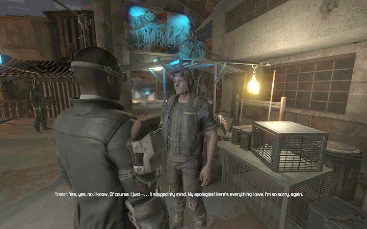 Now head to the second merchant on the market. This one will be more troublesome, as he hired some guards to protect him. You will be able to get rid of them in a blink of an eye. Anton's associated following you will also order you to beat up the merchant (for which you will gain +2 Vory rep. and 40 Serum). If you don't want to do that, you will be fighting with a small group of Vory, but you will be given +1 Karma.