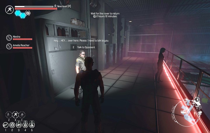 During the conversation you can use Charisma, or Science as arguments. If your efforts are unsuccessful, there's the traditional option to bribe her - pay her 50 Serum to convince her to talk. Afterwards, get back to Amelia and tell her what you've learned.