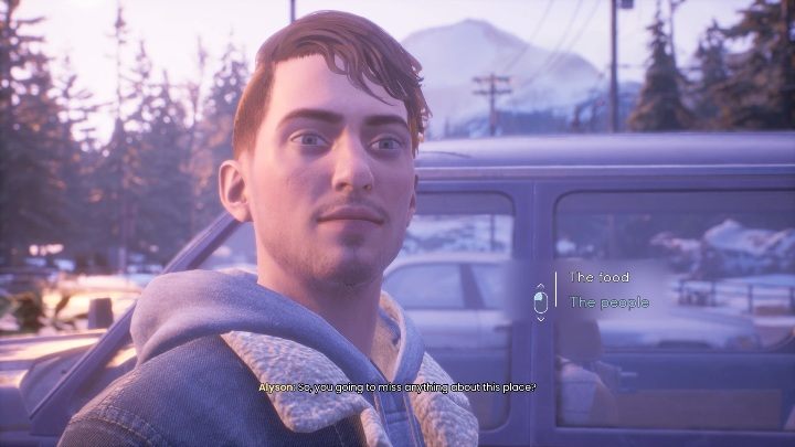 After greeting the sibling, you'll head to the car. This will give you the opportunity to have the first conversation you can have in the game.
