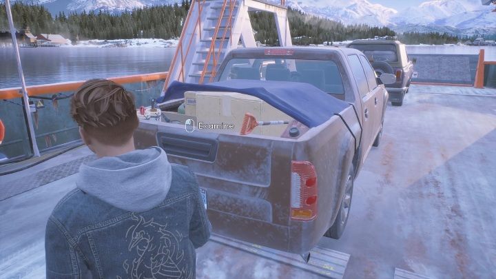 Your conversation is interrupted by a phone call to Alyson. That time can be spent exploring the boat. You can't see much out there. Focus on the pickup truck behind Alyson's car. There are several items on its back that will interest Tyler.