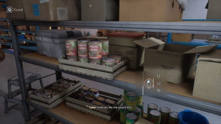 Let's start with canned tomato sauce. Go left to the last shelf and count the number of cans - there are 14. Give the correct answer to your new acquaintance.