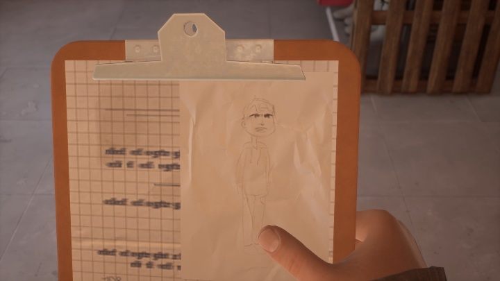 After examing some things, go to Michael. He will show you a beautiful drawing he made during the inventory. You can appreciate his artistic talent or destroy his dreams of becoming an artist.