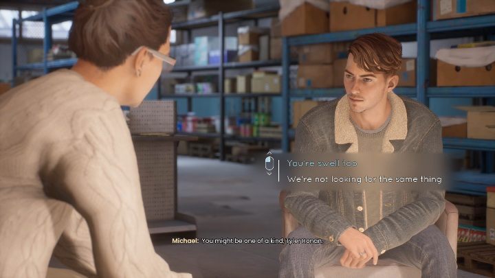 During the conversation, Michael starts complimenting you. You can accept the compliment or reject his advances. Flirting with him will affect your relationship with Alyson.