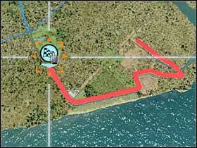I wouldn't recommend participating in this challenge right away. Start off by completing the 'Tour of the Island' challenge. This will allow you to unlock Alfa Romeo 8C Competizione. You should also know that your opponents will be using much slower Brera's. As a result, you won't have any problems outrunning them. Start off by accelerating and moving towards the freeway area. You shouldn't have any major problems with most of the corners (#1). Watch out for smaller jumps, though (#2). Some of them can be quite tricky.
