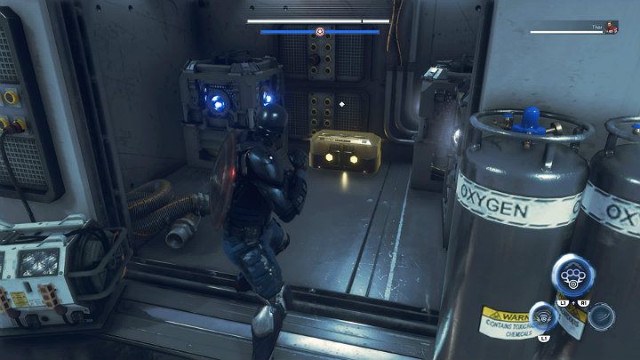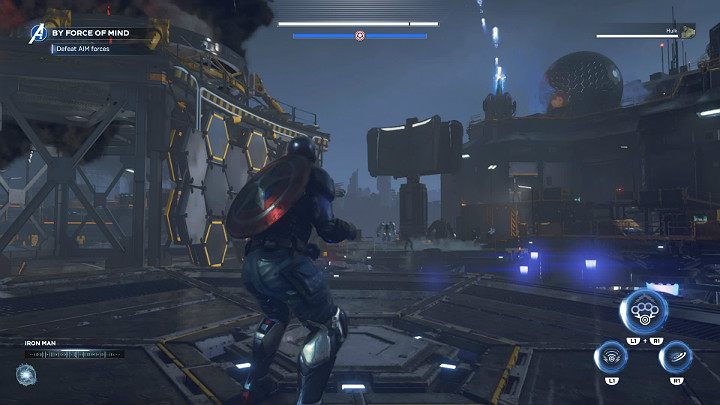 In the final part of By Force of Mind mission, you will once again play as Captain America. While moving deeper into the location, use gravity launchers to reach the air platforms. Run on walls and perform double jumps to move between multiple platforms.
