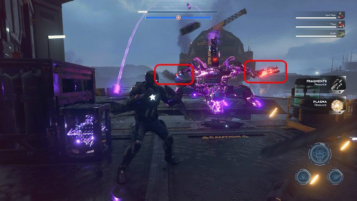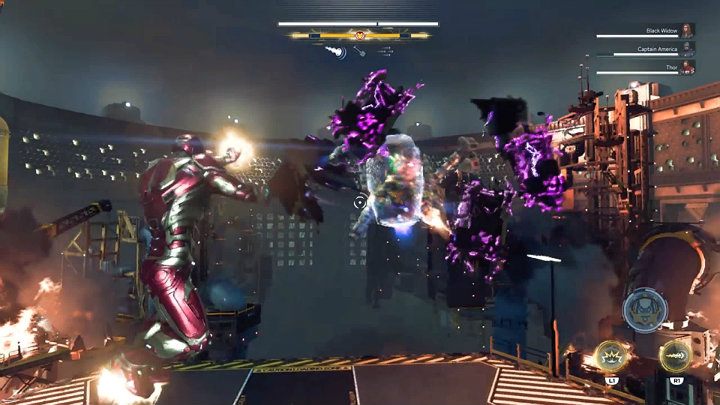 After landing in the main AIM base, the Avengers split up to complete several objectives at once. Natasha and Kamala will try to destroy the main control tower, Tony and Thor will try to destroy as many generators as possible, and Hulk will simply destroy everything in his path.