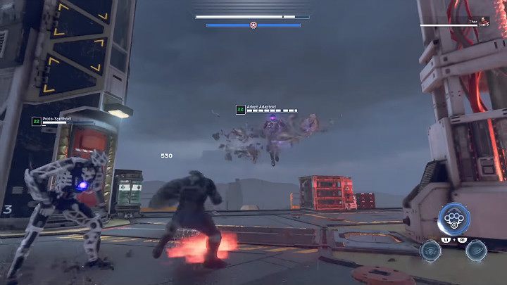 at this stage, the Adaptoids are protected by a fire barrier that must be broken first in order to cause them real damage. What's more, your opponents' fiery ranged attacks do an enormous amount of damage, so prepare for a lot of dodging. Try not to stand next the opponents for too long - you can lose all energy and be unable to use heroic abilities.