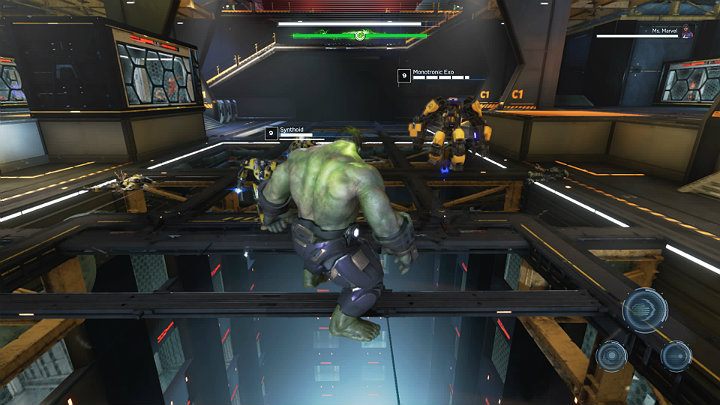 In the fourth phase of the fight, you take control of another Avenger, the Hulk. Your task is to fight against numerous enemy troops. Kamala Khan will support you.