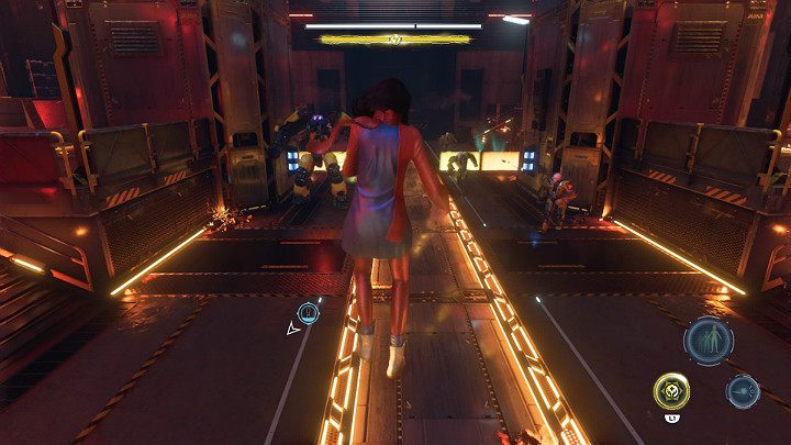 At the beginning of the second phase of the duel, Monica disappears from the range of your sight. Also, AIM drones will appear in the room. Try to eliminate them as soon as possible with a ranged weapon.