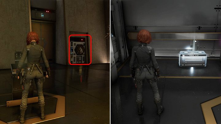 You'll reach one of the rooms of Doctor Rappaccini's laboratory. Black Widow will quickly use the Veil of Shadows ability to hide her presence. You will notice that a Synthoid is moving a bed out of the room - Kamala Khan may be lying on it. You need to get inside.