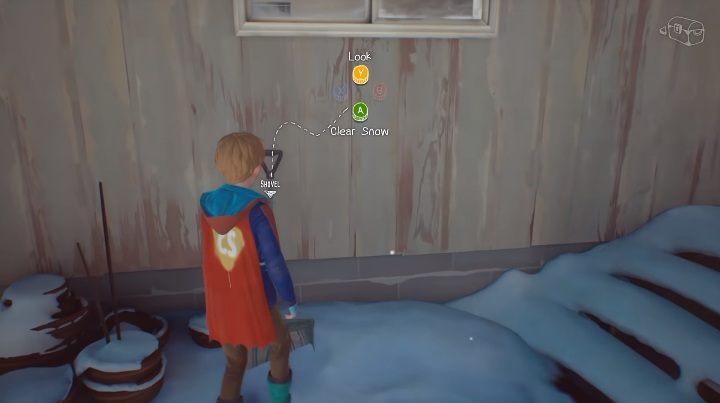 In front of the house you can also collect snow from the stairs, simply grab a shovel and Chris will quickly clean the stairs.