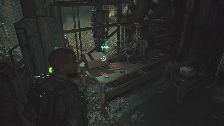 Examine the right area of the next location, as you can find a Tactical Pistol Schematic. You can upload it at the nearest ReForge to unlock a new type of pistol (cost - 600 credits).