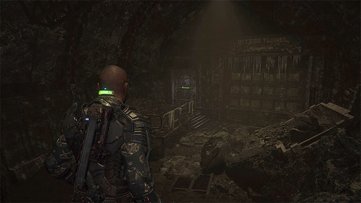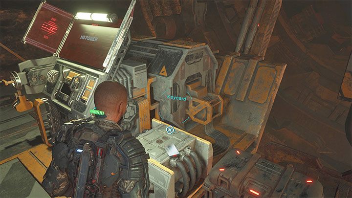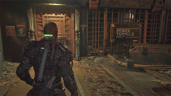 There is a ReForge here and door leading to the platform. You can't activate the platform right now due to a power outage, but you can pick up the Keycard (screenshot above). Return to the Power Tunnels entrance - you can now unlock it thanks to the Keycard.