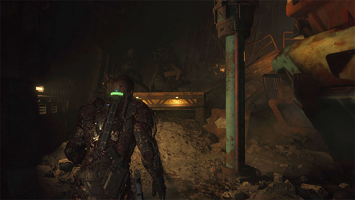 After a short climb sequence, you'll encounter a cocoon, as well as monsters with sight. In the location with large vehicles, there are many spikes that are perfect for killing opponents. Approach the Power Tunnels entrance - it is closed for now.