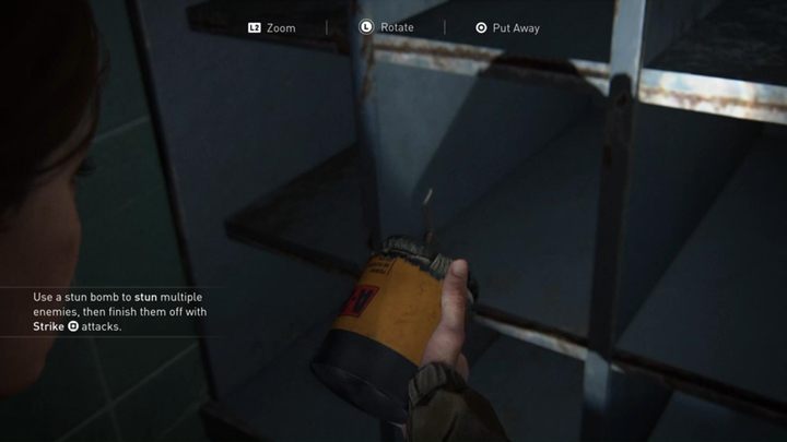 After killing the enemies, go to the door and open it with Dina's help. Below you will find stunt bombs, which are useful when you are attacked by a large group of enemies.