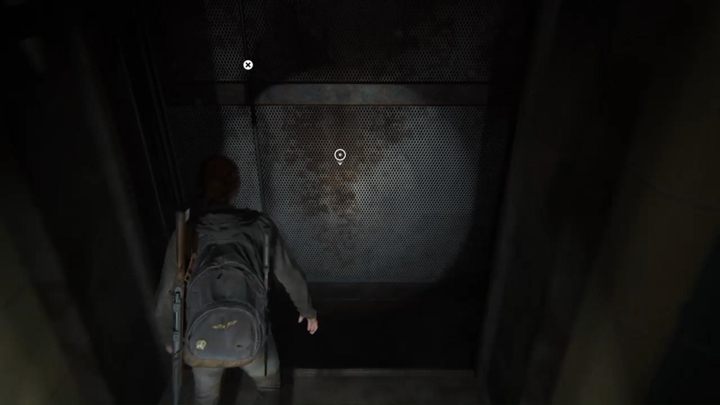 Walk a bit until you reach the gate, hold it for Dina to reach the other side. There is a runner nearby - the area is covered with tall grass. This is a good opportunity to test the mechanic of hiding in the grass - you are much less visible in it. This is a good way to sneak up on enemies and kill them quietly.